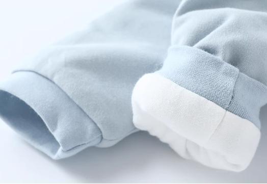 ストライプのオーバーオールを着ているように見えて、可愛く防寒してくれます♪