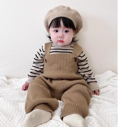 おしゃれベイビーになっちゃお☆ニットオーバーオール3点セット☆秋冬☆66/73/80/90/100☆