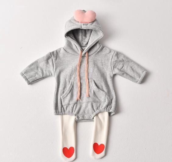フードに付いたハートがアクセント!!丸いシルエットのパーカーロンパースです☆