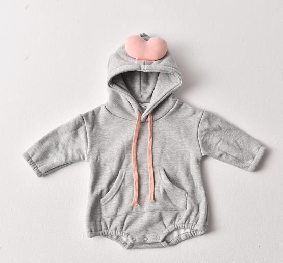 フードに付いたハートがアクセント!!丸いシルエットのパーカーロンパースです☆