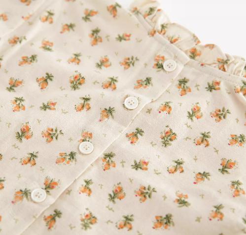 立ち襟の花柄シャツとふんわりフリルパンツのセットです☆