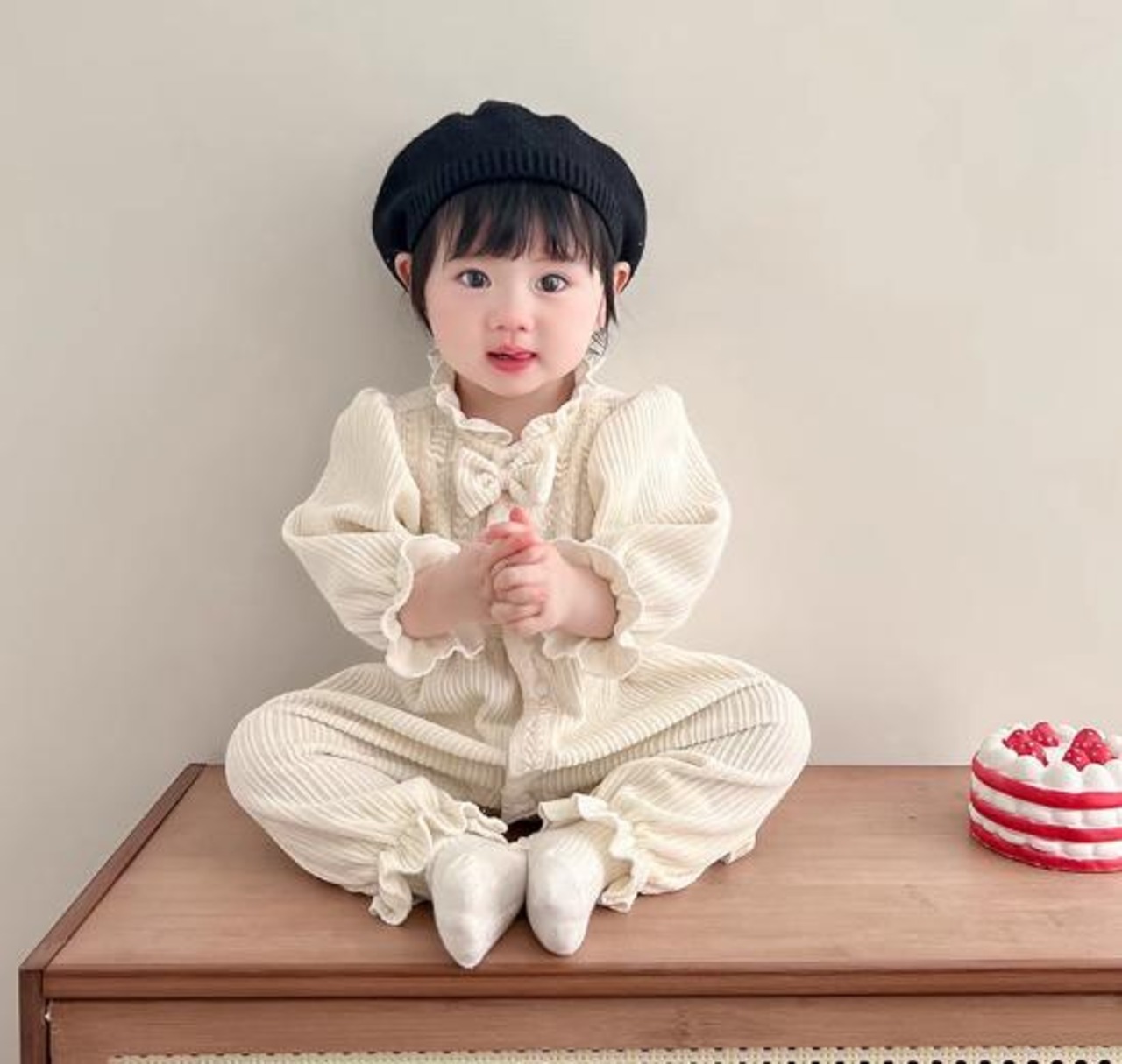 【セット】ちっちゃな頃からお洒落girl☆お袖ギャザーの甘めロンパースとベレーのセット☆春秋☆66/73/80/90☆