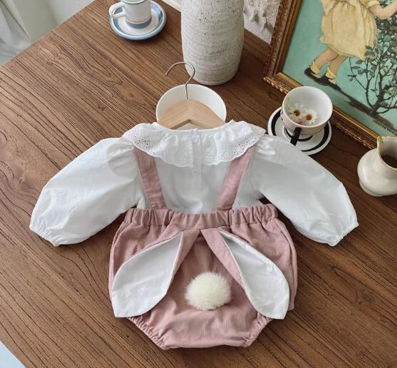 ウサギの妖精、現る!?ふんわりブラウスとオーバーオールのセット☆秋☆66/73/80/90☆