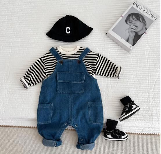お散歩着の定番☆大きなポッケのデニムオーバーオール☆春秋☆73/80/90/100☆