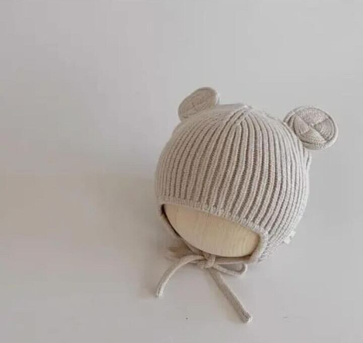 ・まん丸お耳のマウスボンネット(ベージュ/ブラウン)